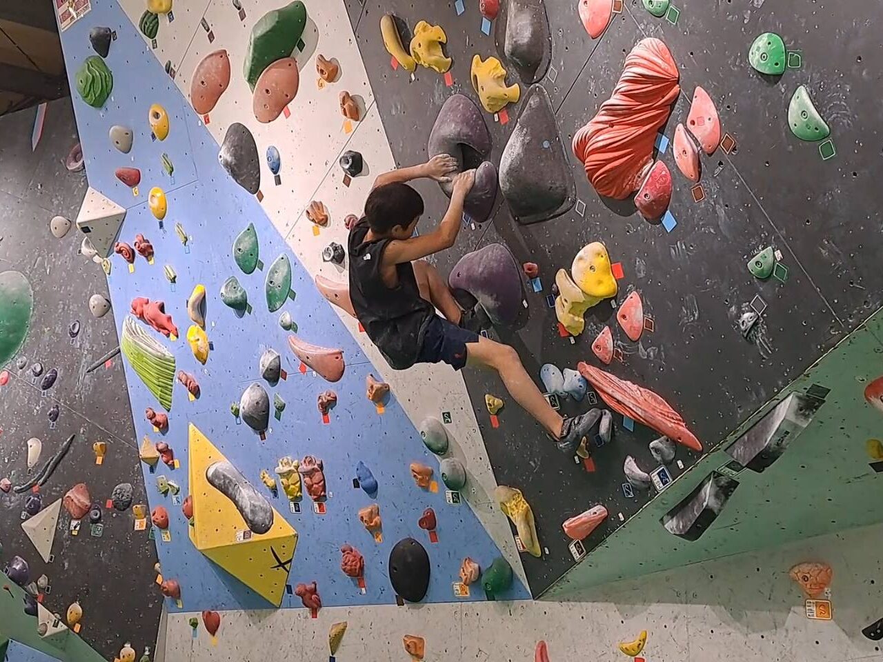 彼はこの夏に行われた実力テストをパスして、中学生以上を対象とした選手養成クラスであるボルダリング部に小学生特待生として参加が決まりました。