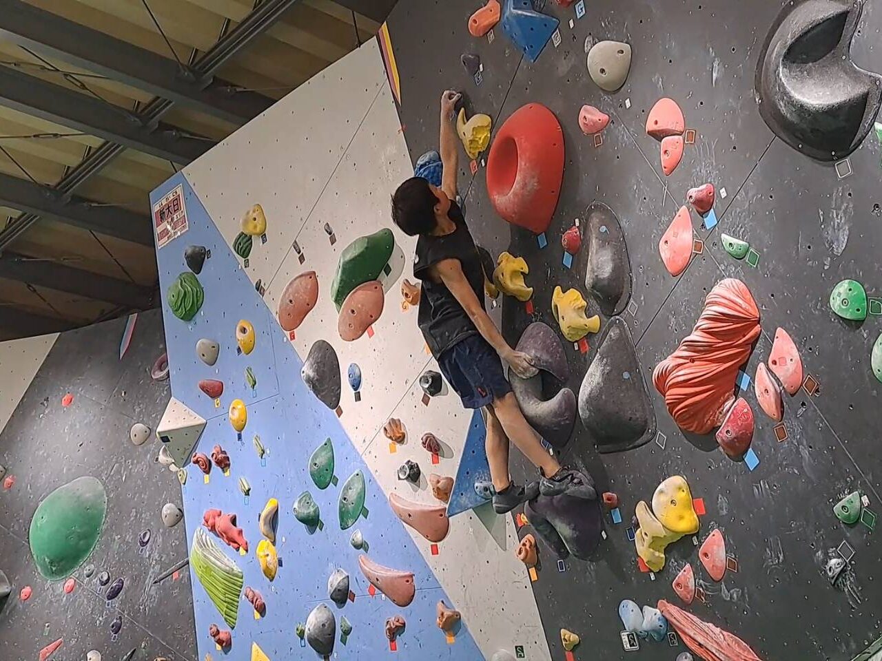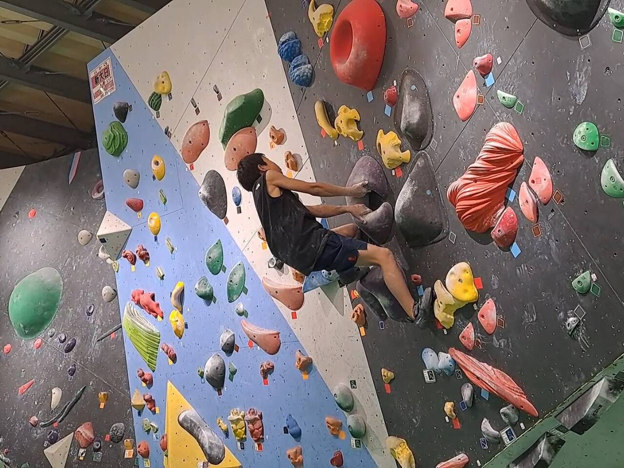 画像内で登っているのは3級ですが、すでに1級、2級を精力的に打ち込み、完登したあとの追い込み中。