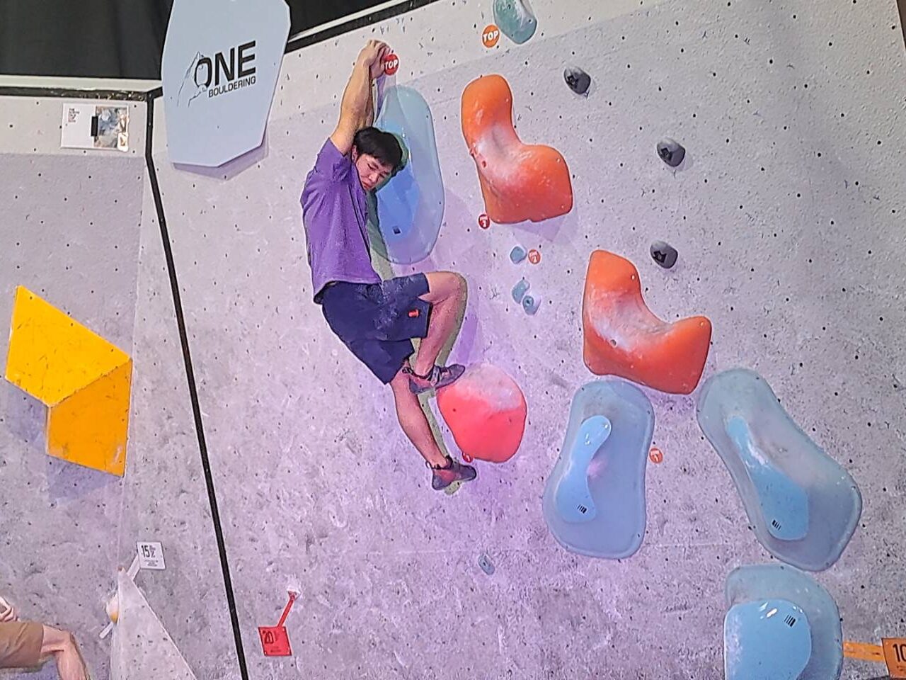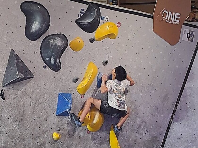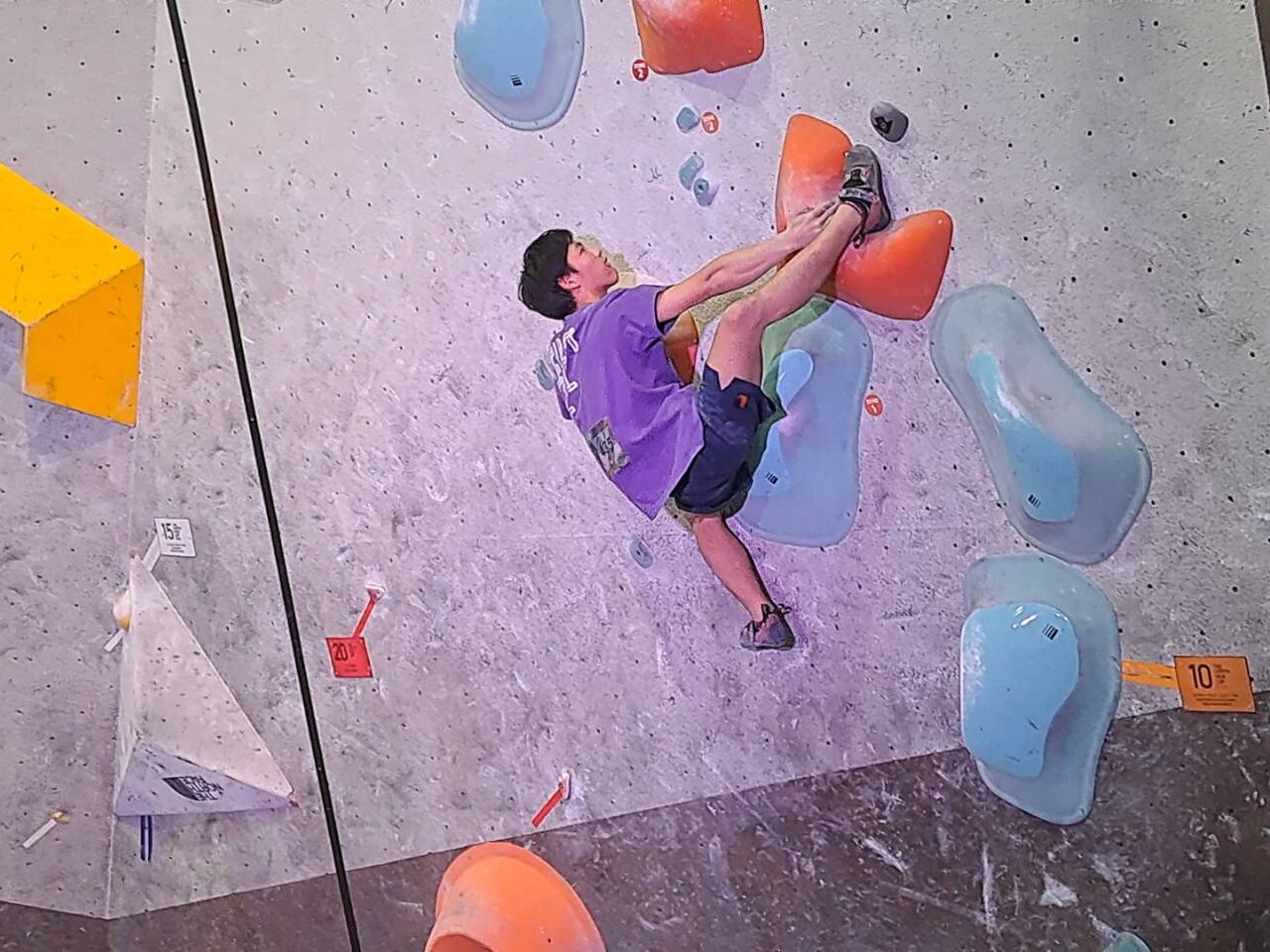 ボルダリングコンペは完登したルートの本数や、それに要したトライ回数で競いますが、本大会はトライ回数に関してはカウントしないルール。