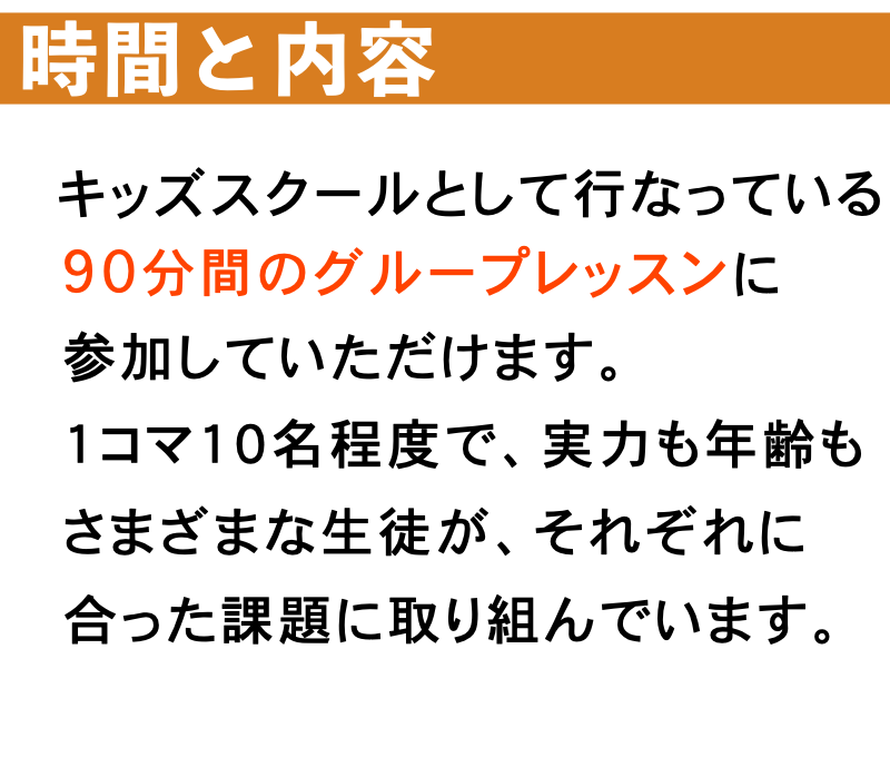 これは基本的に初心者用のレッスンですが、本人のレベルに合わせて指導します。